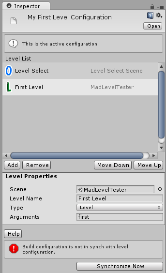 Make sure that you have My First Level Configuration selected and take a look at the Inspector.