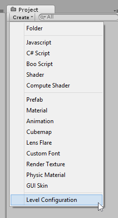 First thing that you need to do is to create Level Configuration. This will be the work flow of your game. It will determine what scenes will be loaded first, and the order of your playable levels. To create one, click on the Create button in your Project view…