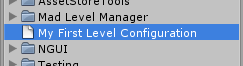 Now we will create two playable levels. As scene we will use MadLevelTester that is placed in Mad Level Manager/Examples/Scenes. This scene imitates playable level and allows to proceed to the next one and return to level select screen.