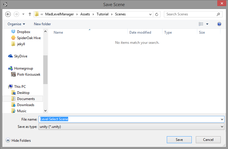 …in new Tutorial/Scenes directory as Level Select Scene.