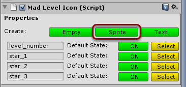 In order to create a star property, just click on the Create: Sprite button in the icon inspector. New sprite property will be created and selected: