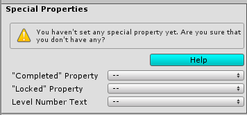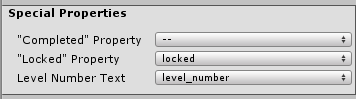 How Mad Level Manager knows when to display locked property, or which property is level number property? It doesn’t! You have to setup which properties are special. To do this go to iconTemplate inspector and find section that is called Special Properties:
