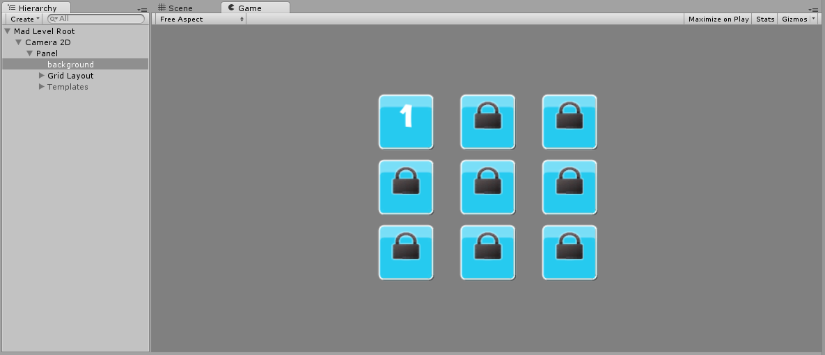 Let’s now add background layer. I will use bg12.png texture from Mad Level Manager/Themes/Theme2/Textures/background directory.