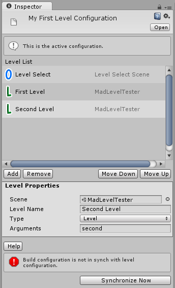 Make sure that you have My First Level Configuration selected and take a look at the Inspector.