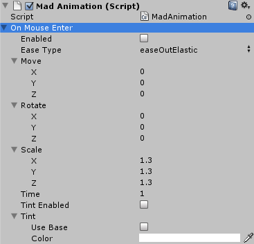 The last one is a Tint. It’s disabled by default so if you want to animate sprite tint, you should check Tint Enabled. The tint can be set to one of two options: