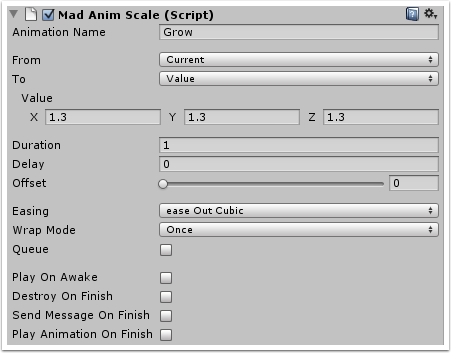 - Destroy On Finish – Destroys current game object when this animation is finished.