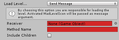 - Send Message – Won’t load a level, but instead will send a message using Unity SendMessage() feature.
